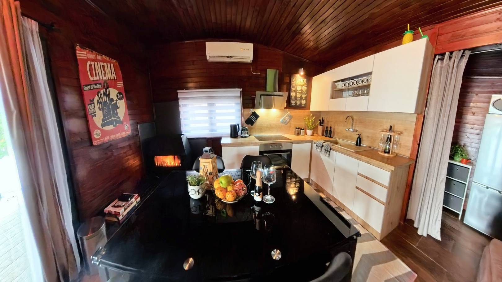 Vanjska terasa pruža Vam uživanje dnevnog boravka, a opremljena je s velikim blagovaonskim stolom, vanjskom garniturom za opuštanje i odmaranje, a prema Vašem zahtjevu i potrebama moguće je dio terase pretvoriti i u vanjsku kuhinju za pripremu domaćih specijaliteta: peka, roštilj, kotao za kotlovinu, električni roštilj, vanjski prijenosni štednjak i plinsko kuhalo. Ukoliko imate potrebe za dodatnom vanjskom kuhinjom, molim Vas da nam se obratite kako bismo pripremili potreban postav.